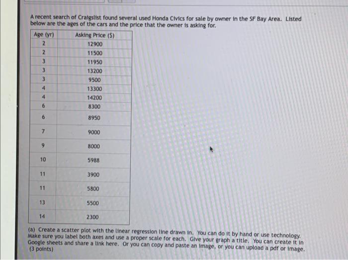 Solved A Recent Search Of Craigslist Found Several Used Chegg Com